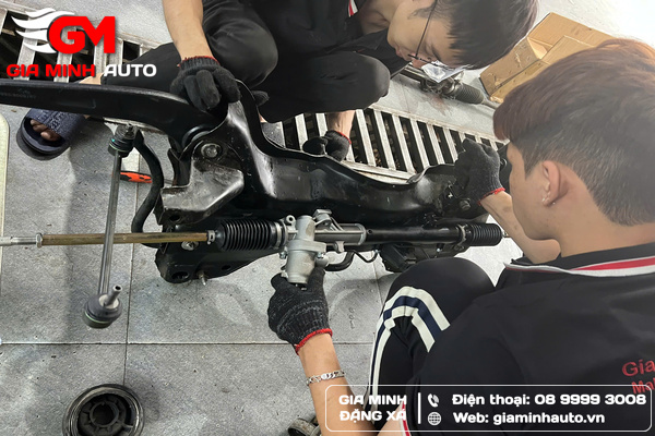 2. Kiểm tra tình trạng rotuyn, càng A, thước lái xem có hư hỏng, rơ hoặc rò dầu không.